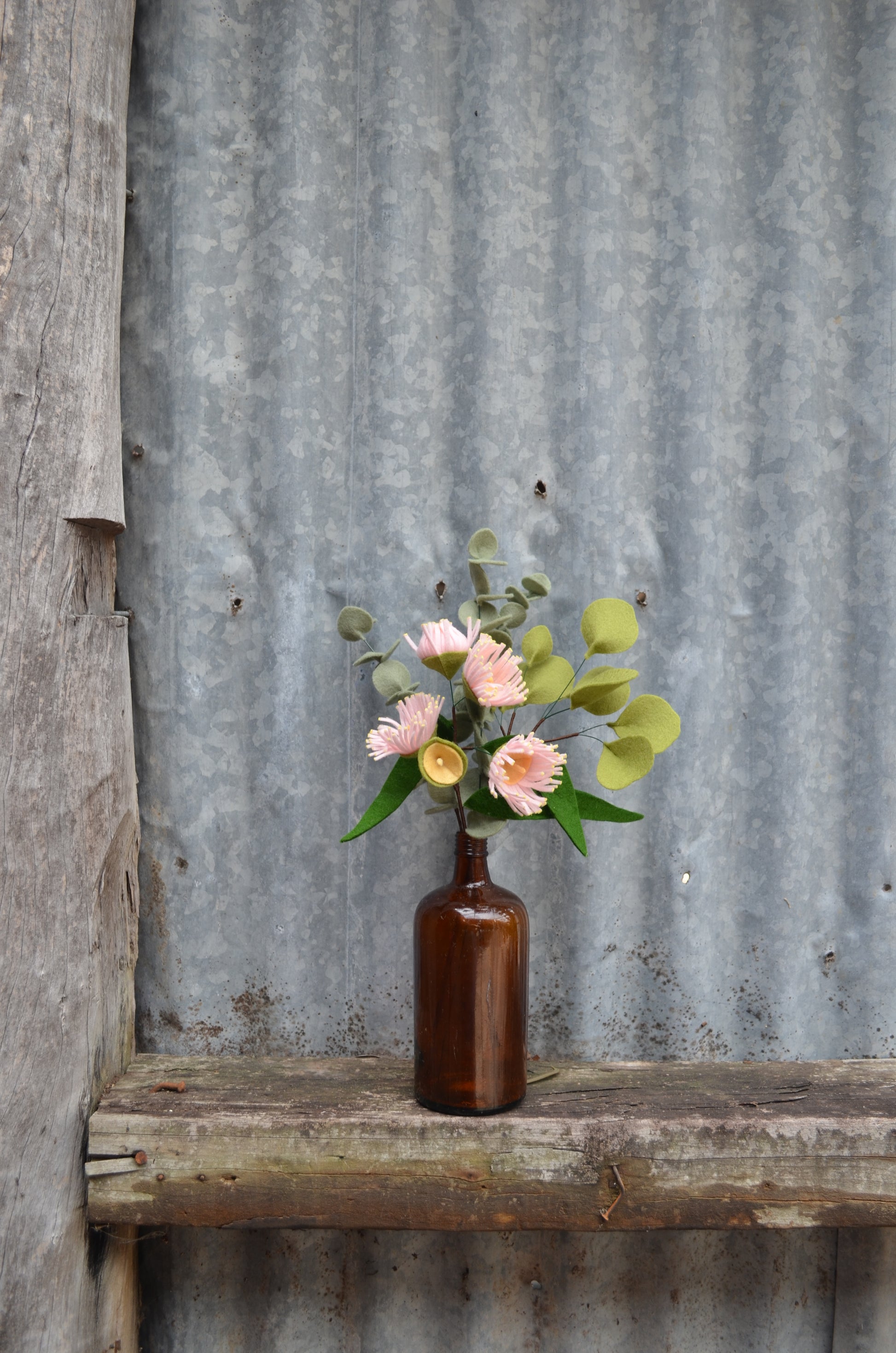 With large, round leaves, dollar eucalyptus is great for adding volume to your felt bouquet. Each stem is cut from pure wool felt and assembled by hand. Felt flowers make a wonderful gift because they don't wilt or die, require little to no maintenance, and are allergen free.