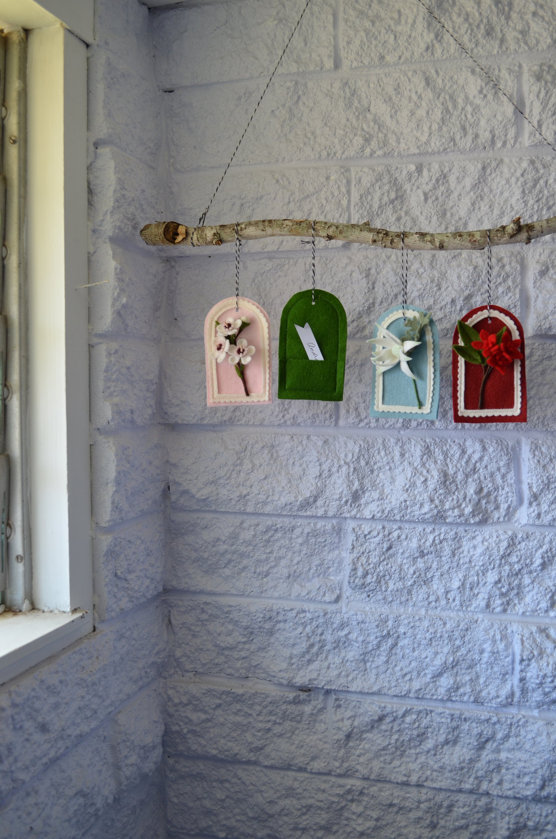 Perfect for adding a fun and whimsical Aussie bush feel to your festive wrapping this holiday season. Gift tags are handcrafted from wool felt and hung with a black and white butcher's twine showcasing four different floral designs with colourful backgrounds. Each tag features a small pocket on the back to place your recipient's name or a little gift.
